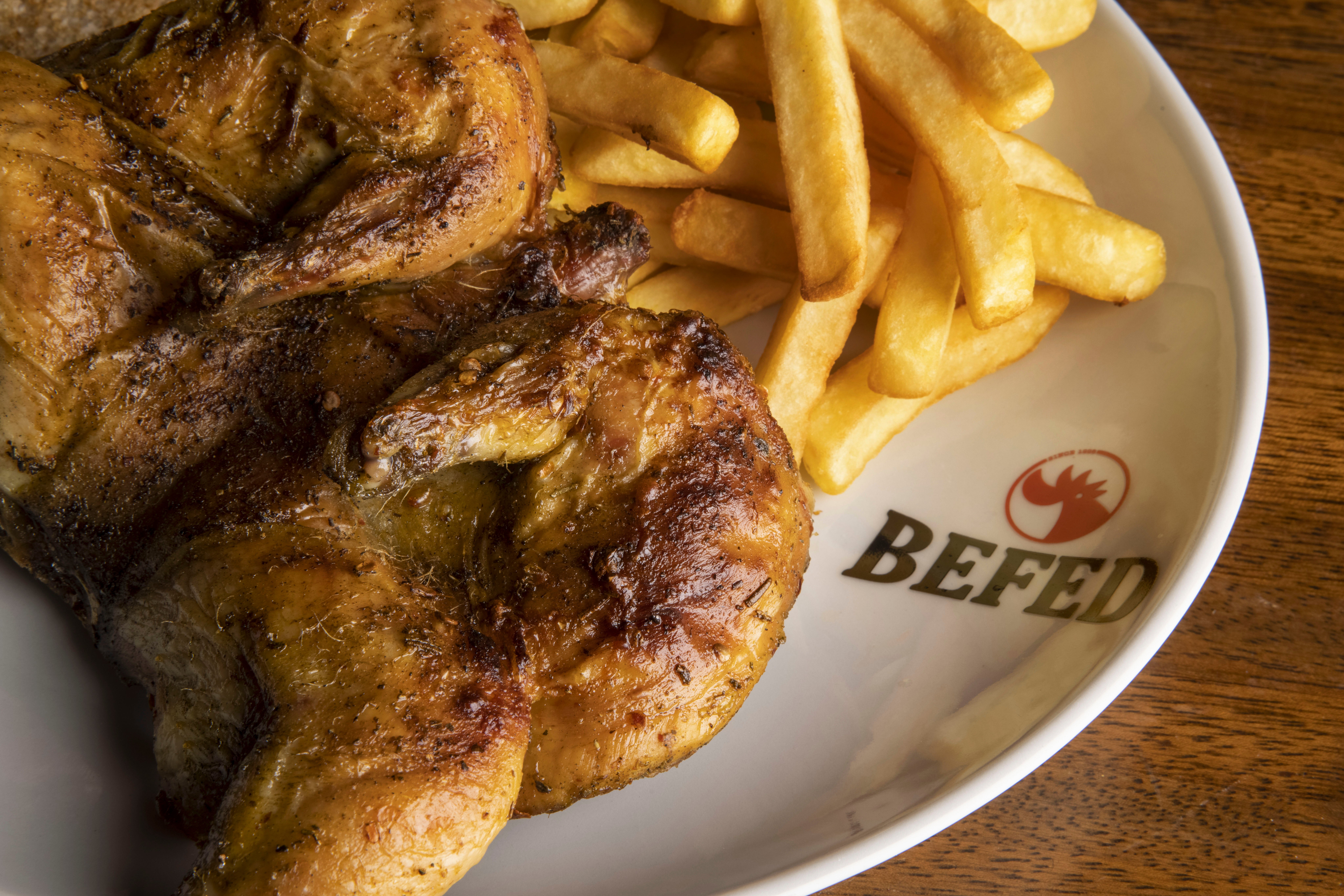 Galletto speziato e leggermente piccante, con patate fritte, pane integrale, tostato con burro e salsa Befed18,00 €PopolareGalletto Befed con patate - metà
