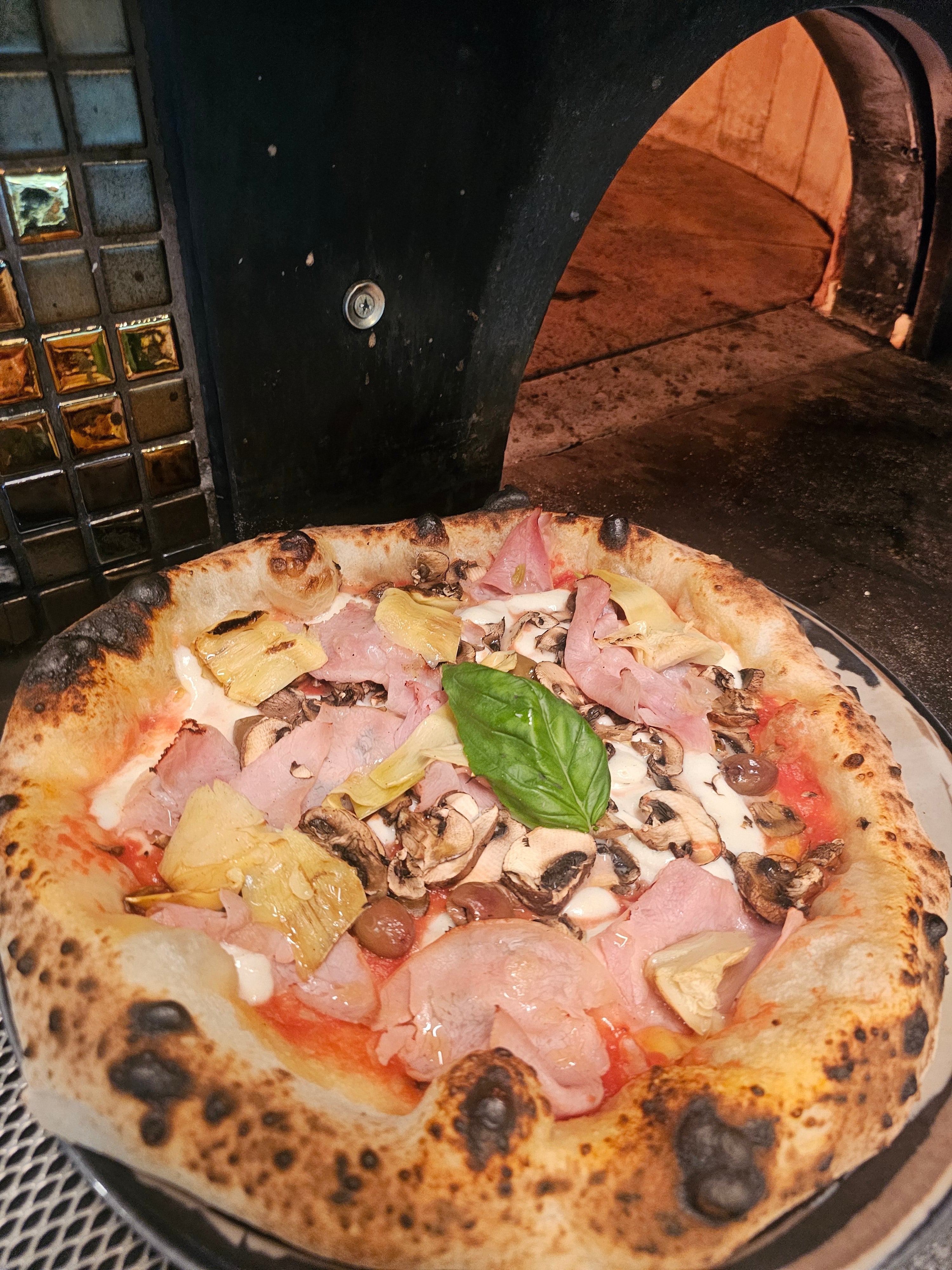 Fior di latte, crema di pistacchio di Bronte, salsiccia di maialino nero, scaglie di parmigiano, basilico, olio Evo€13.00Kalo
