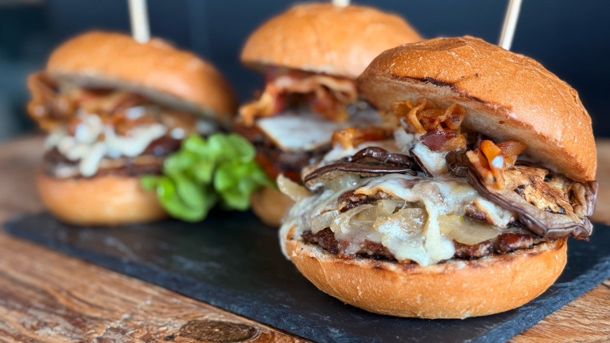 Ottime recensioni· 180g burger*, pancetta croccante, formaggio Latteria Trentina, cipolle caramellate, pomodoro e insalata12,50 €Due buoi