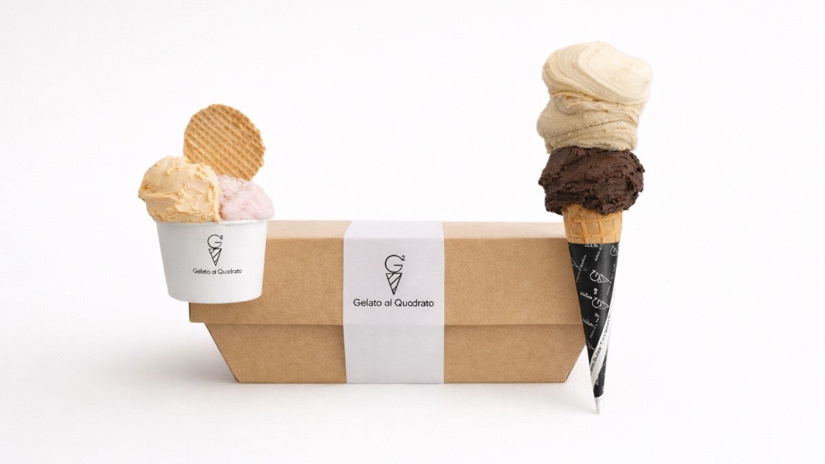 Vaschette di gelato artigianale di alta qualitá. Packaging ecologico in cartone.