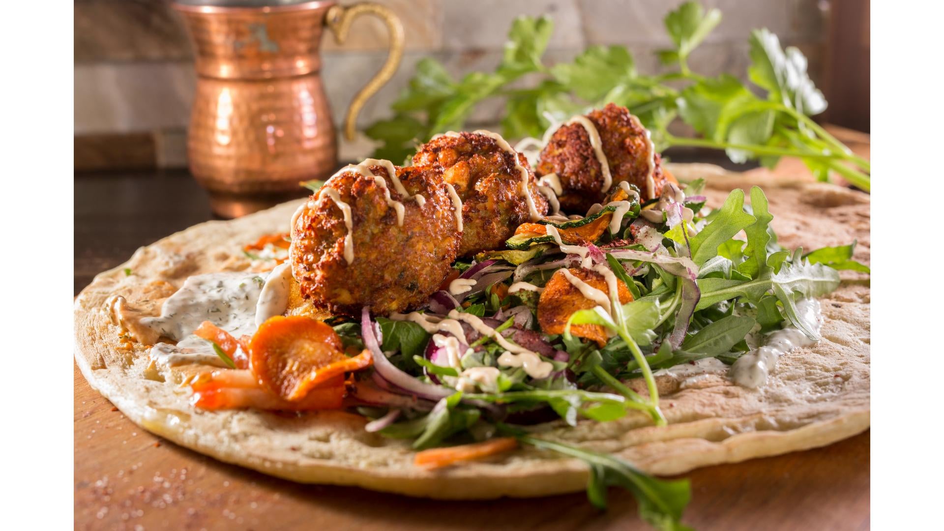 Polpette di ceci e verdure macinate, salse10,50 €Vaschetta döner kebab - grande