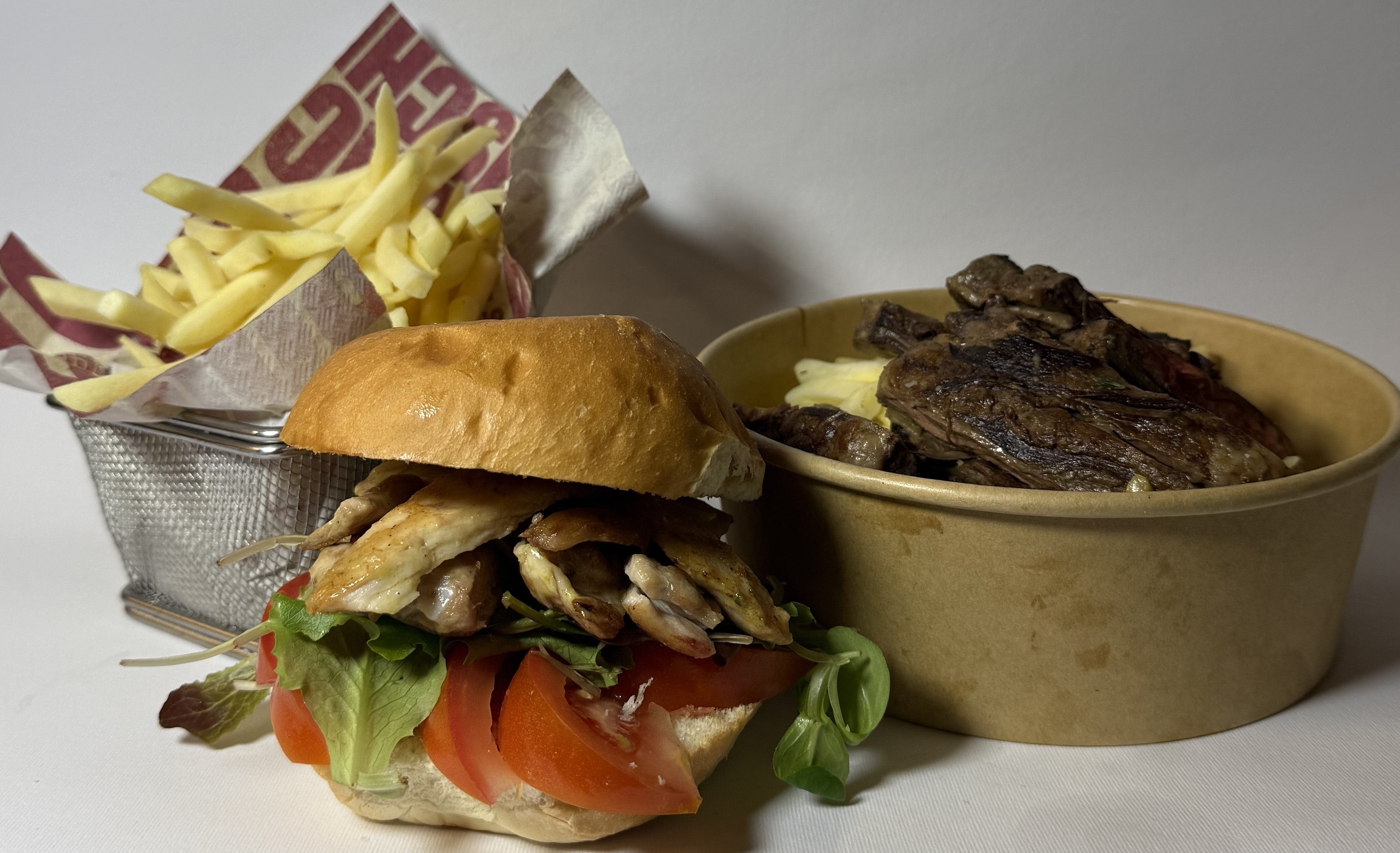 bun al latte, smash burger da 100gr. cheddar, sovracoscia di pollo, inalata pomodoro e la nostra salsa14,00 €