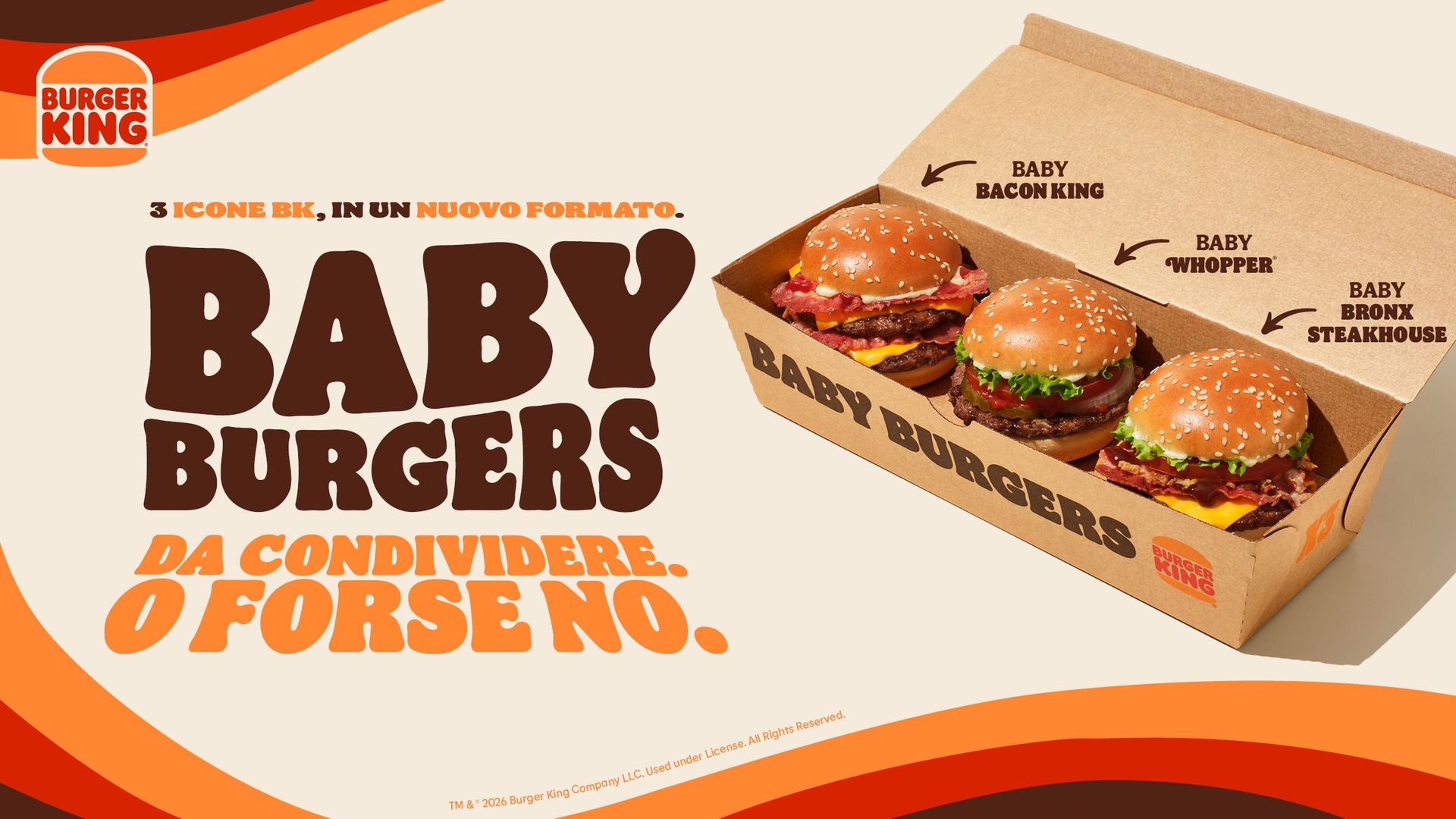 "Siamo arrivati, BABY". Prova la nostra nuova box con tre icone di Burger King in formato mini ma con lo stesso carattere da King: Baby Bacon King, Baby Whopper e Baby Bronx Steakhouse. Piccoli fuori, ricchi di gusto dentro e perfetti per essere condivisi (o forse no).16,40 €