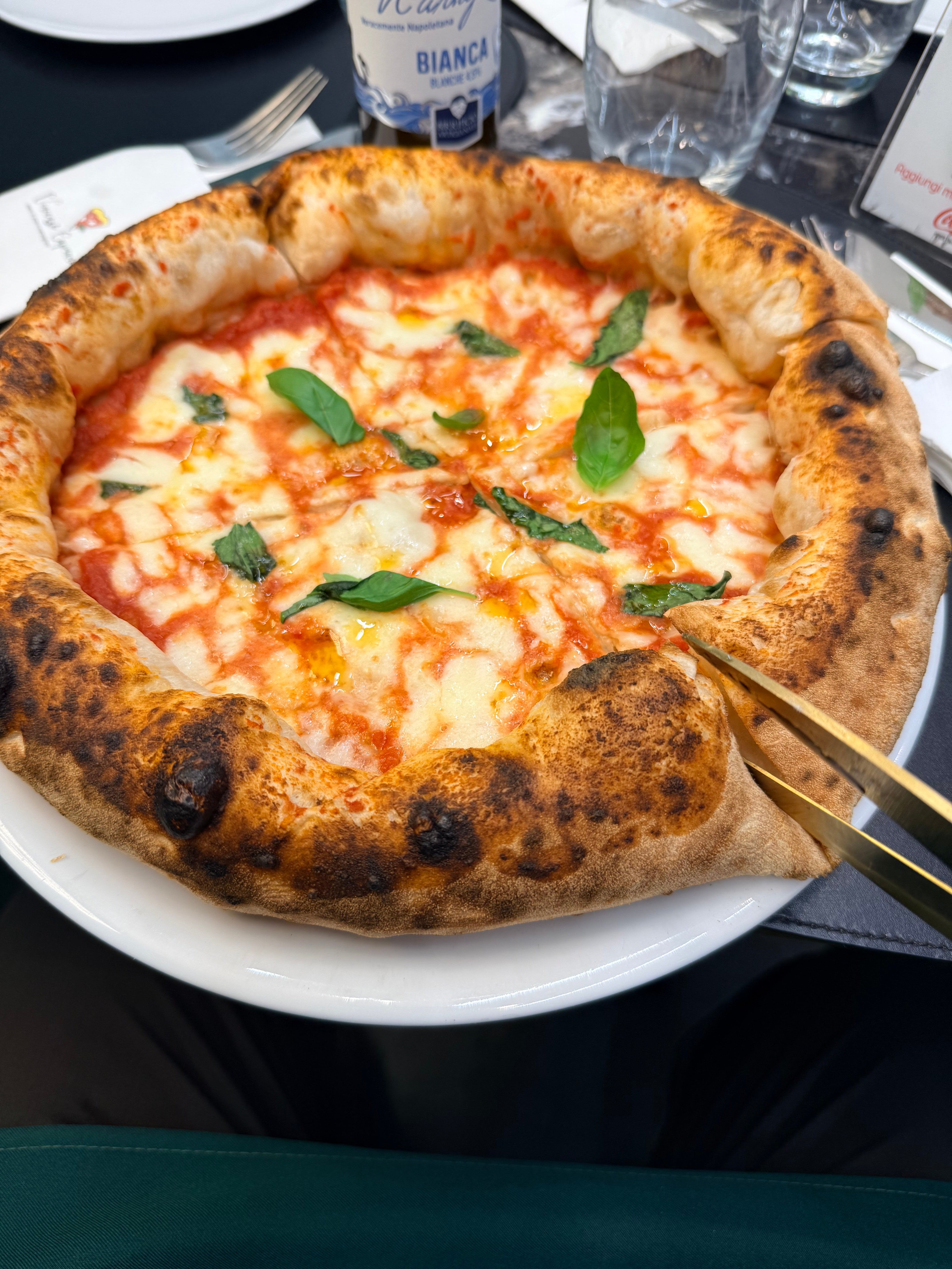 base fior di latte , dopo in uscita dal forno , prosciutto cotto , sfoglie di carciofi arrostiti , granella di olive nere ,scaglie di cacioricotta , basilico e olio evo14,00 €Sguardo alto