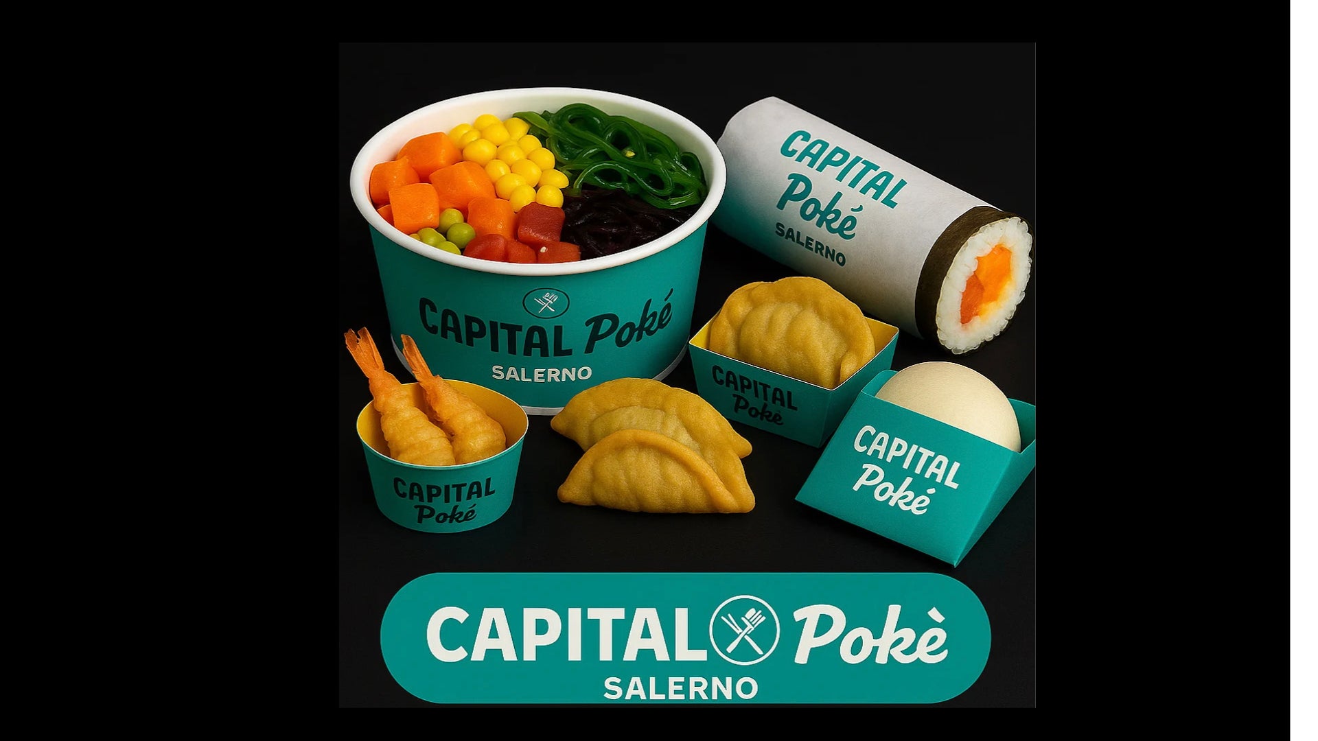 Riso basmati, gamberi tempura, avocado, carote, mais, gomawakame, cetrioli, pomodorini, maionese normale, mayo lime, patate fritte€10.50Capital pollo poke