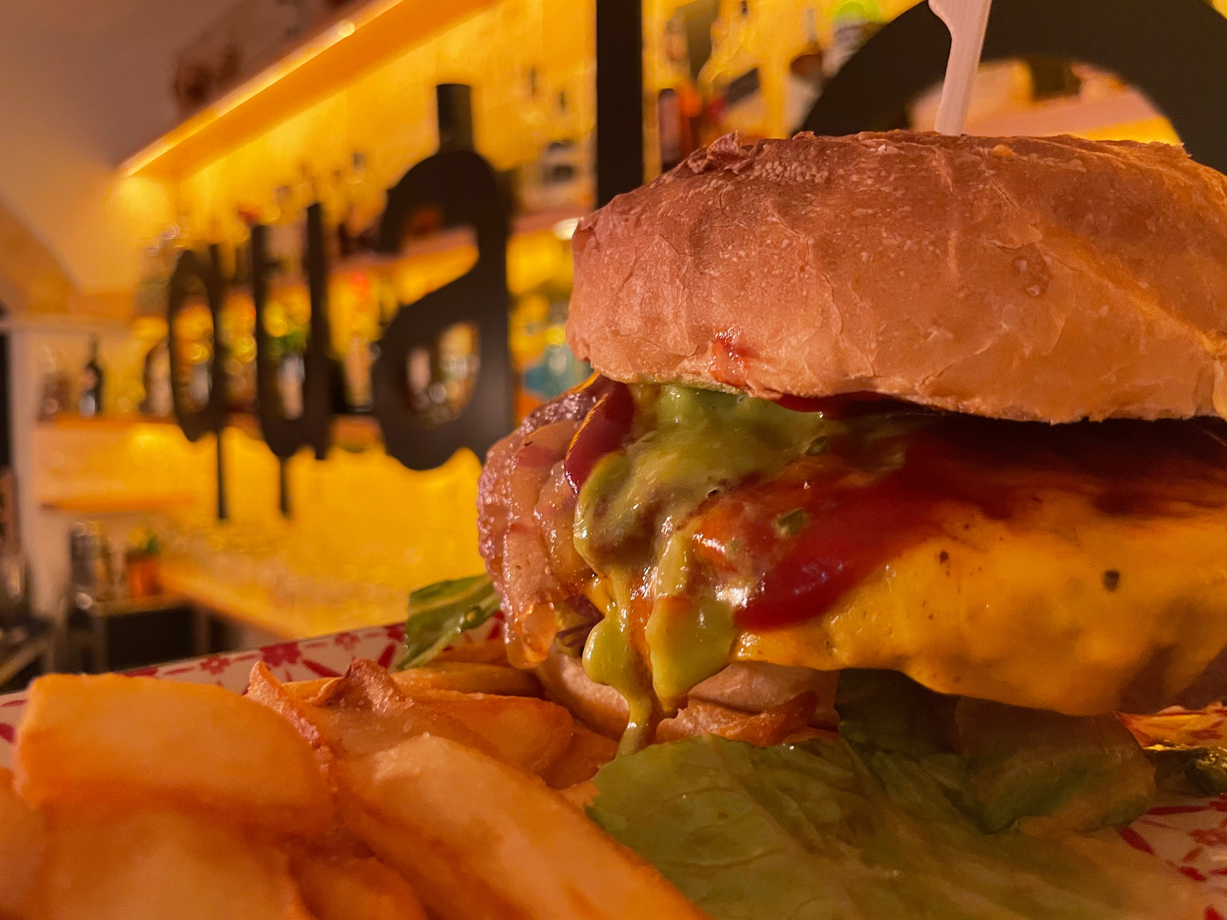 Hamburger di Scottona da 200gr, pomodoro, cipolla, formaggio, bacon, uovo, salsa bbq e salsa al mango12,50 €Brioso