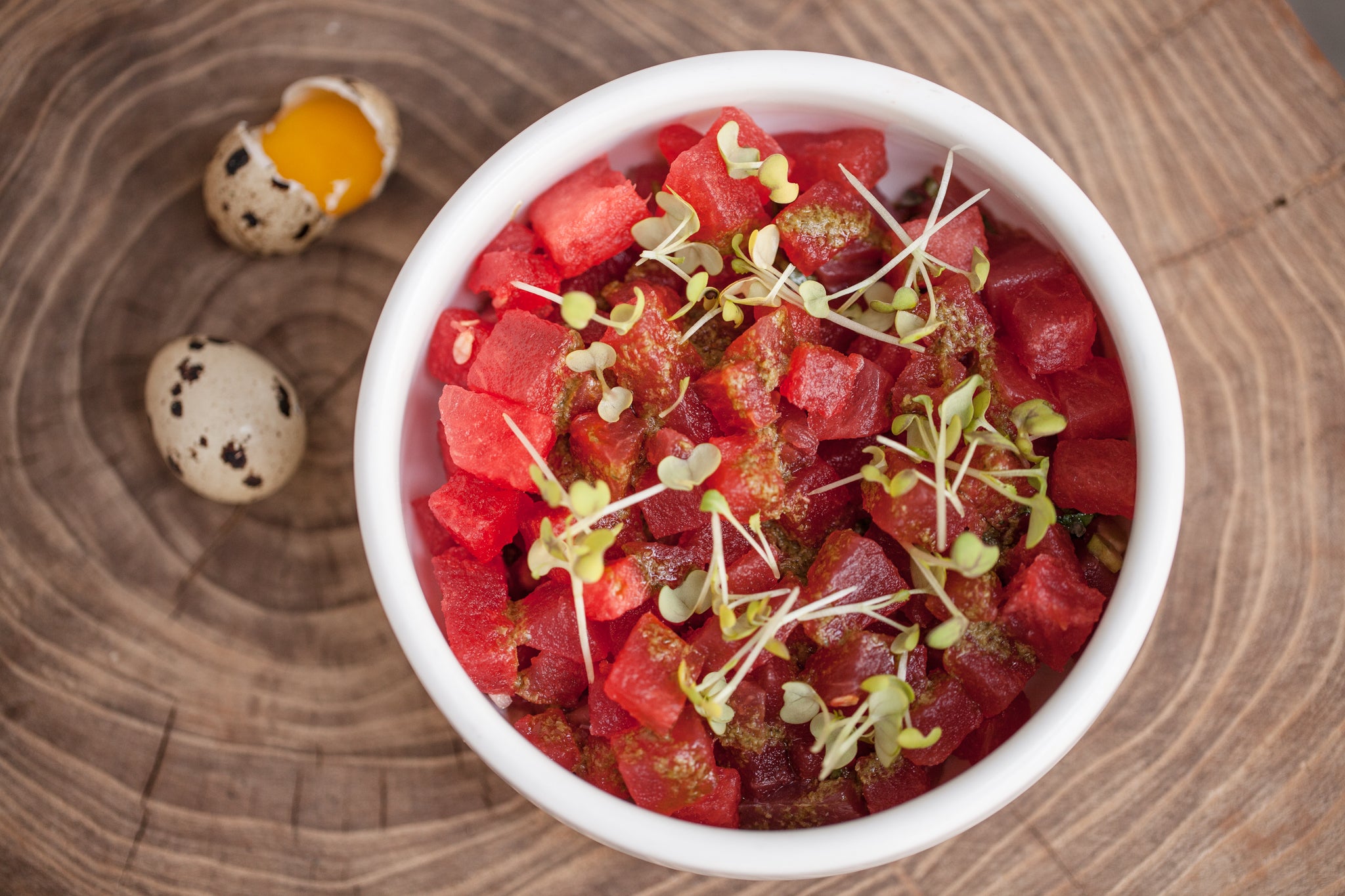 Torta fritta, speck di ventresca e bresaola di tonno.22,00 €Rosso di Mazara