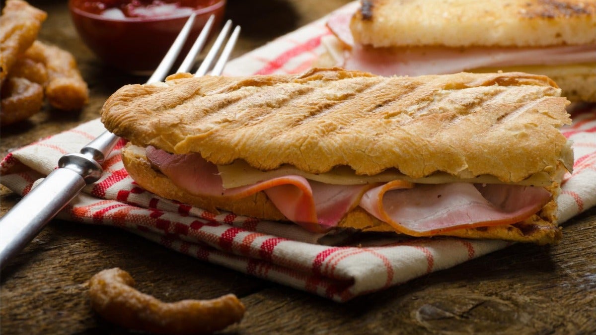 Tramezzino con cotto, funghi e salse