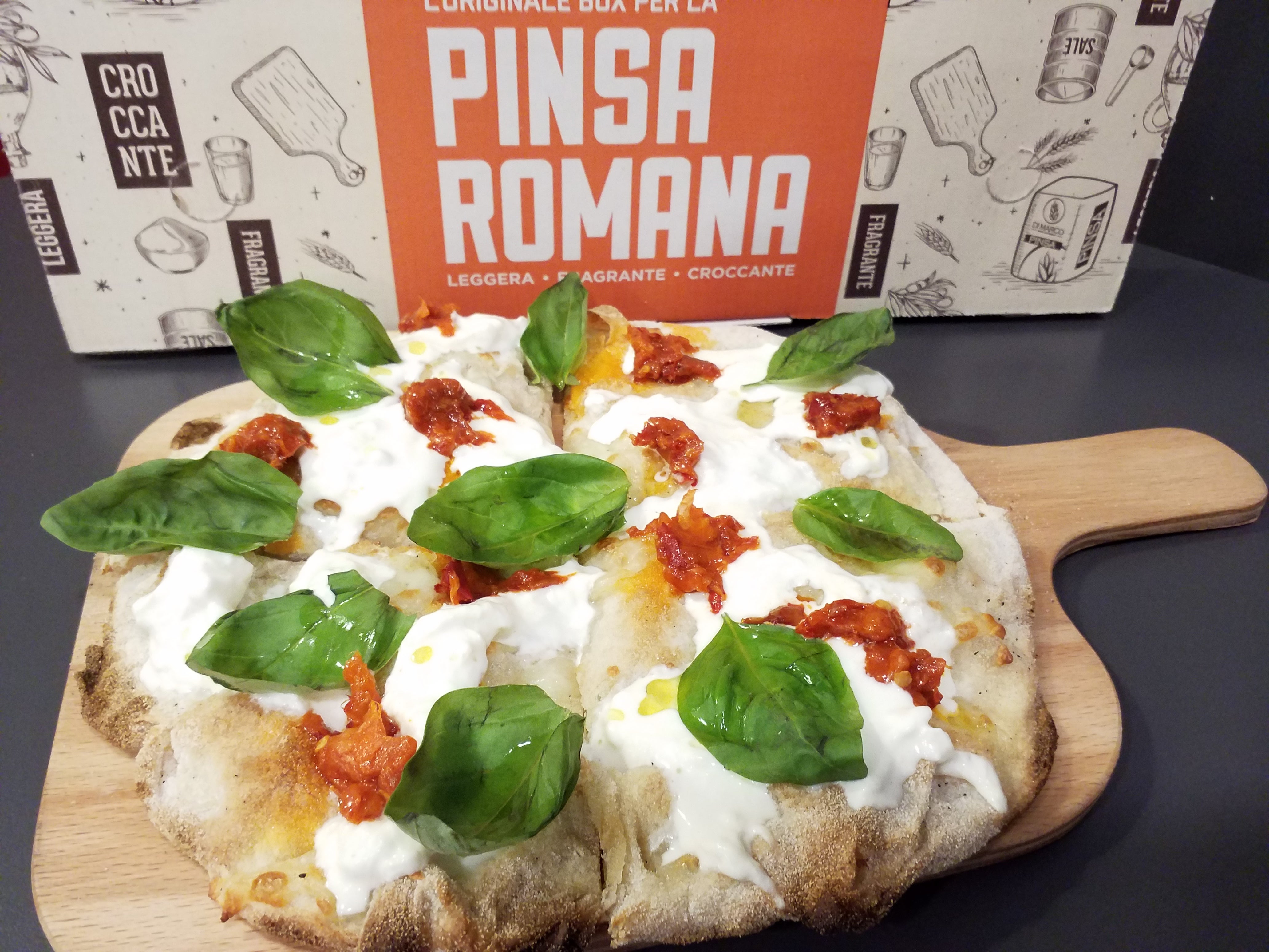 Pomodoro, guanciale croccante " VILLANI ", pecorino romano DOP buccia nera " DEROMA ", pepe nero€13.00Pinsa rossa - Pinsa Tonda