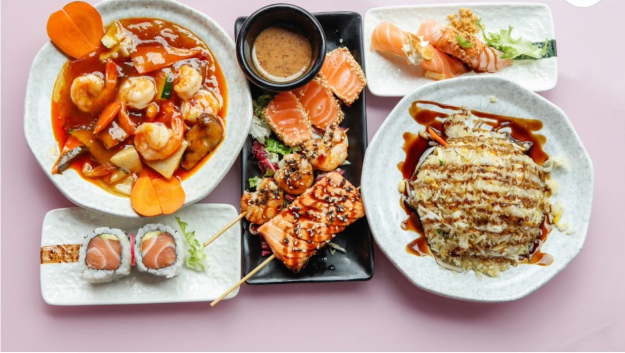RISO CON SALMONE ALLA PIASTRA, SALSA TERIYAKI, SESAMO, E CIPOLLINE9,00 €HalalCHIRASHI