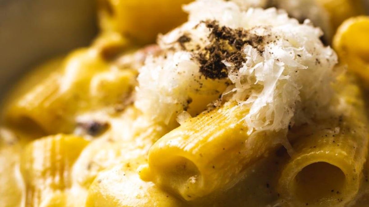 Unicamente con guanciale d'Amatrice IGP e pecorino romano dop14,00 €Rigatoni carbonara - il piatto